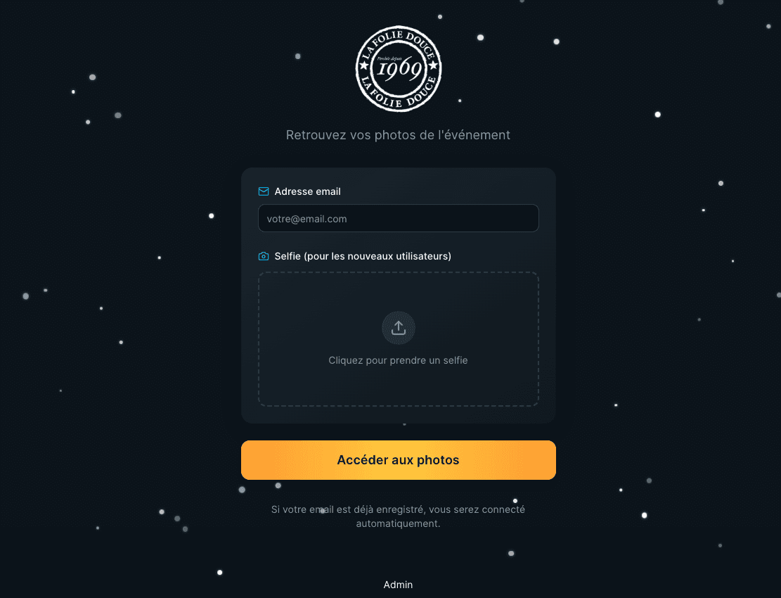 Simple et rapide - Un selfie et un email sont suffisants pour permettre aux participants de recevoir leurs photos en instantané.
